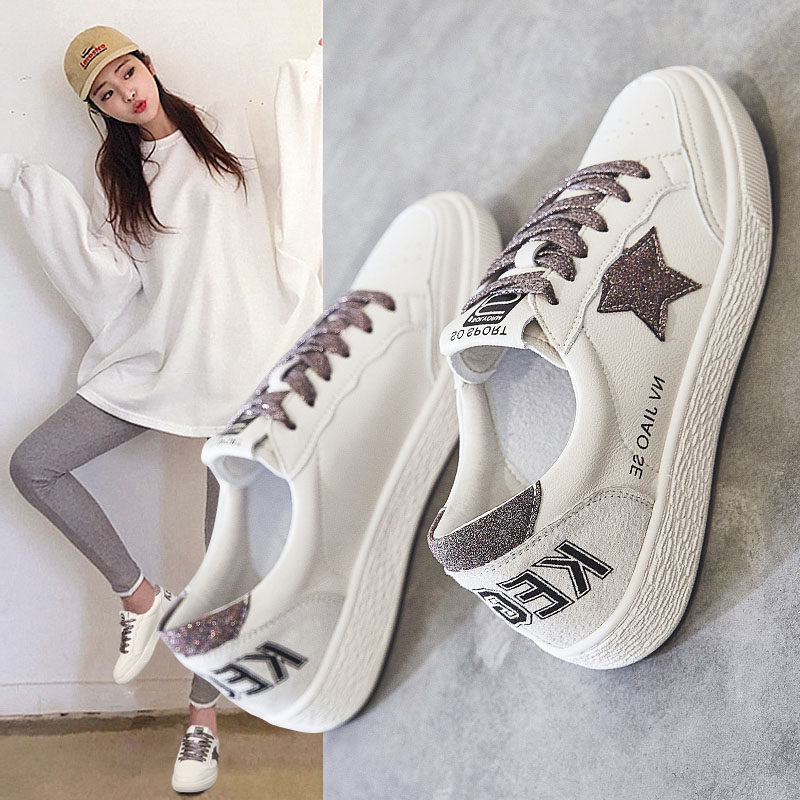 Board Shoes Women Ins Tide 2022 Summer Nets Red Korean Version 100 Hitch Flat Bottom Low Helping Stars Genuine Leather Little White Shoes Woman