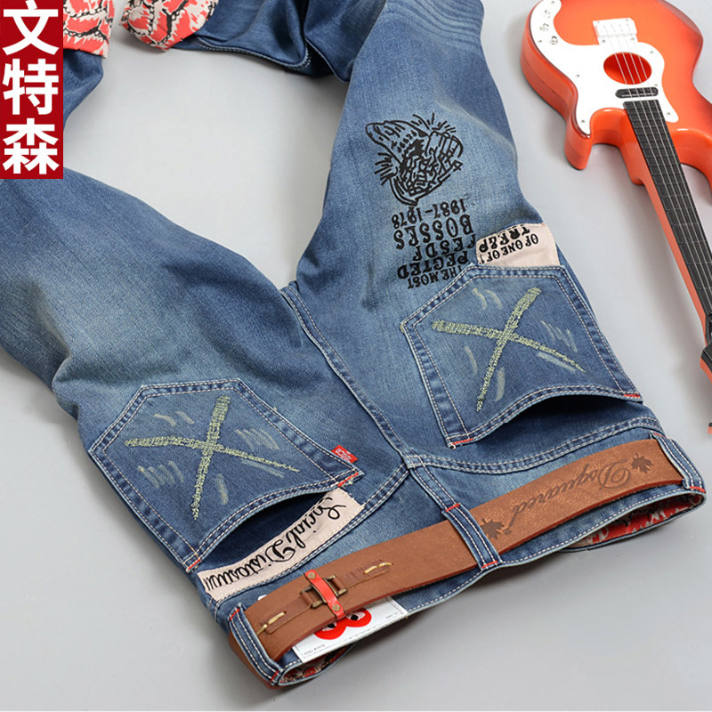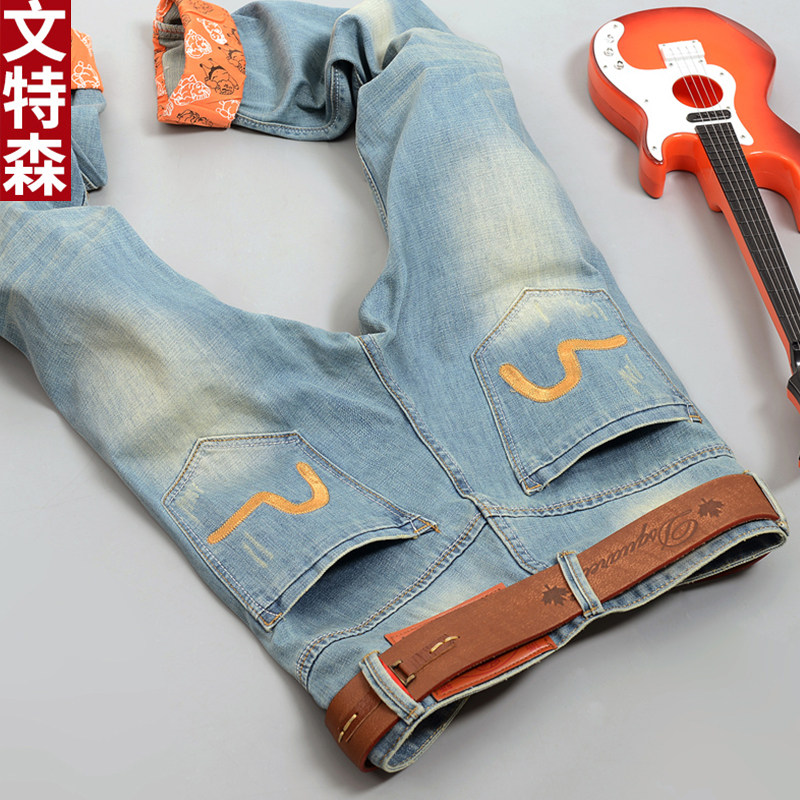 Spring and Autumn Korean version of the trend tide brand patch patch men's light-colored ripped jeans youth straight pants