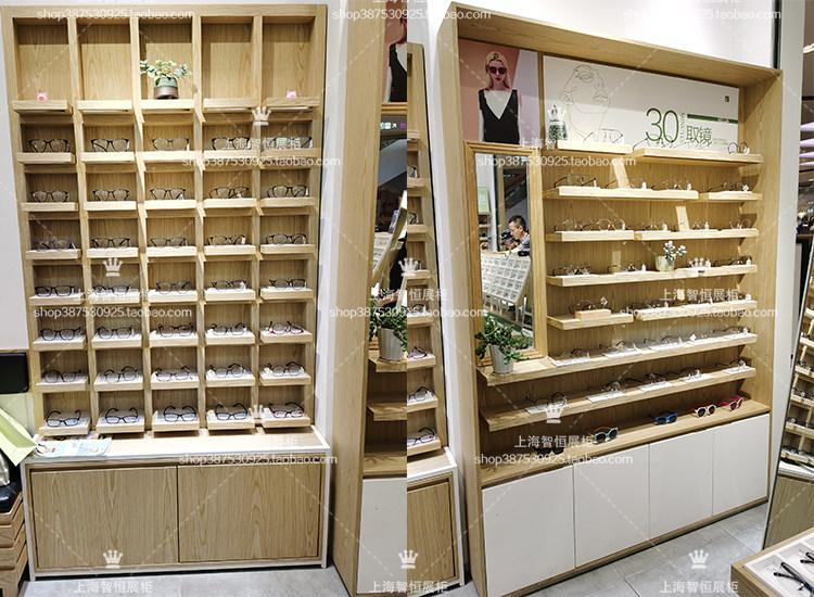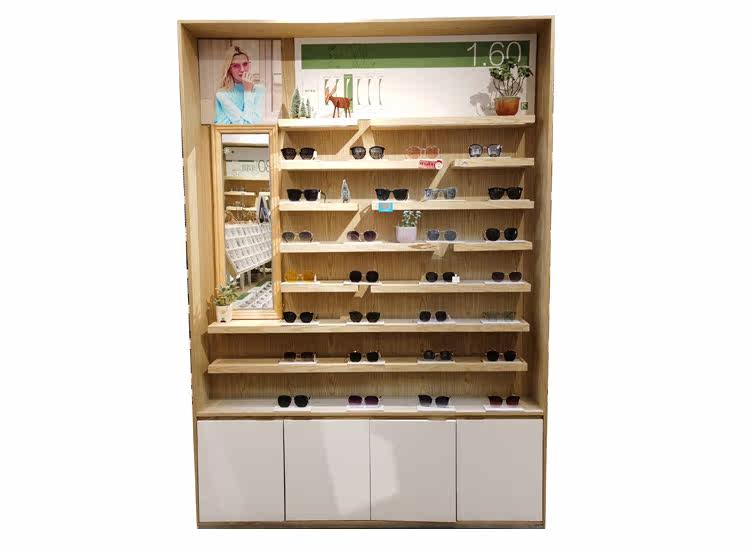 Optical shop display cabinet shelves custom paint-free board wooden glasses counter display cabinet vertical high cabinet custom cabinet