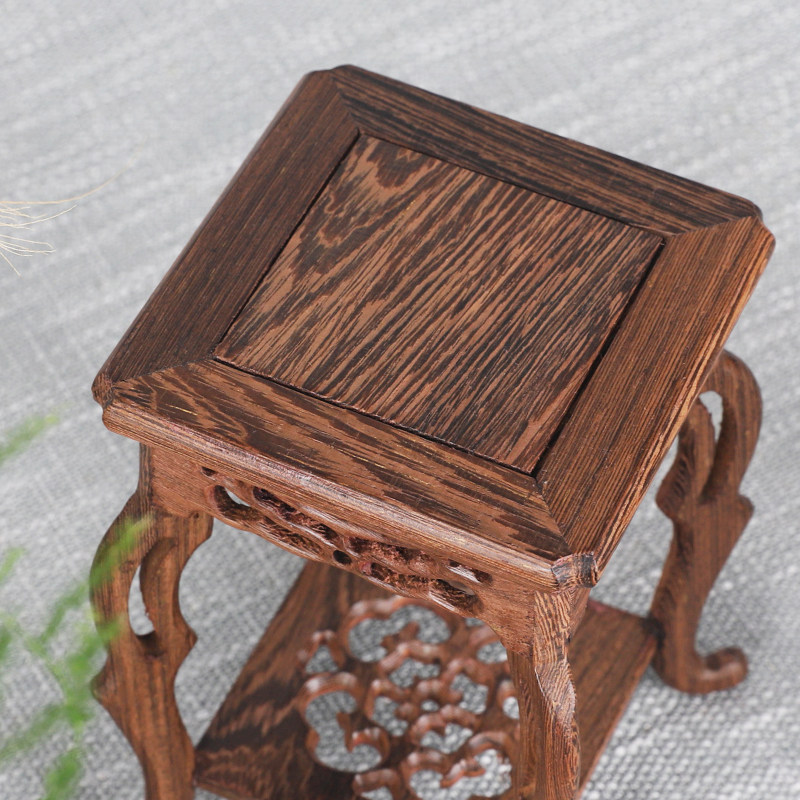 Chicken wing wood small flower stand Flower pot plant meaty ornaments Mahogany crafts base Wood carving stone jade solid wood tray