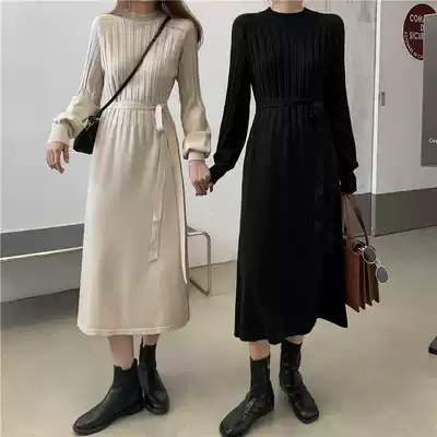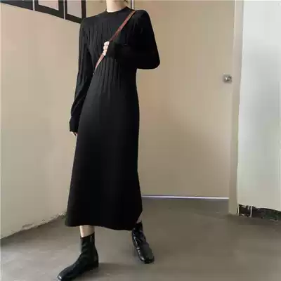 Pregnant women knitted dress loose belly belly A- line dress Korean fashion autumn and winter base skirt stretch sweater long skirt tide
