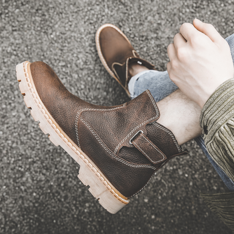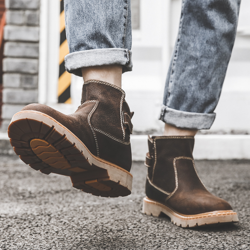 Chelsea boots men's autumn and winter men's Martin boots British style high boots cowhide mid-tube men's boots tooling boots