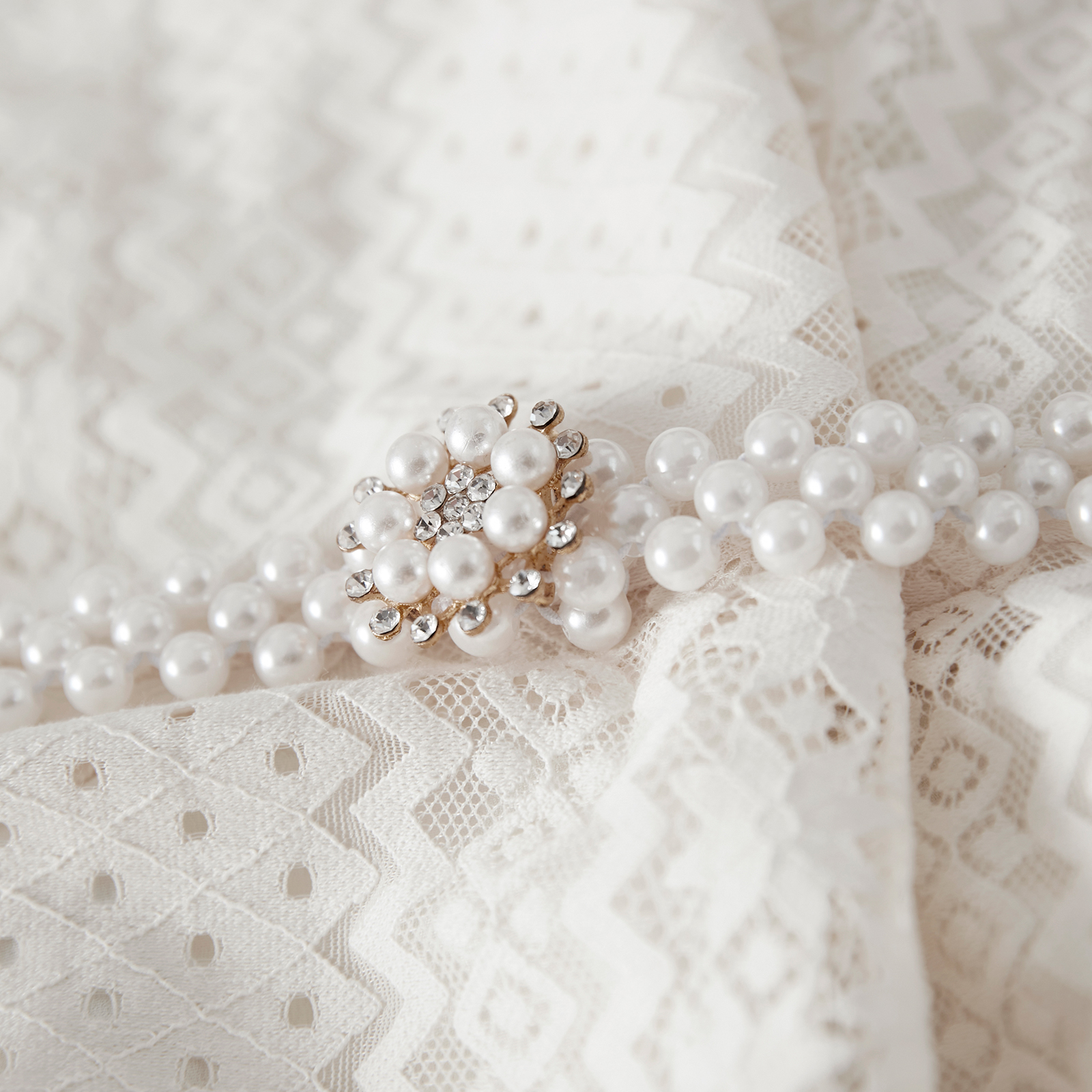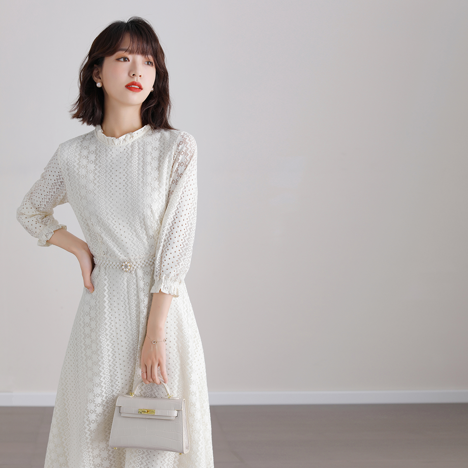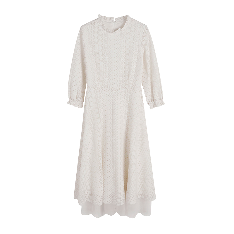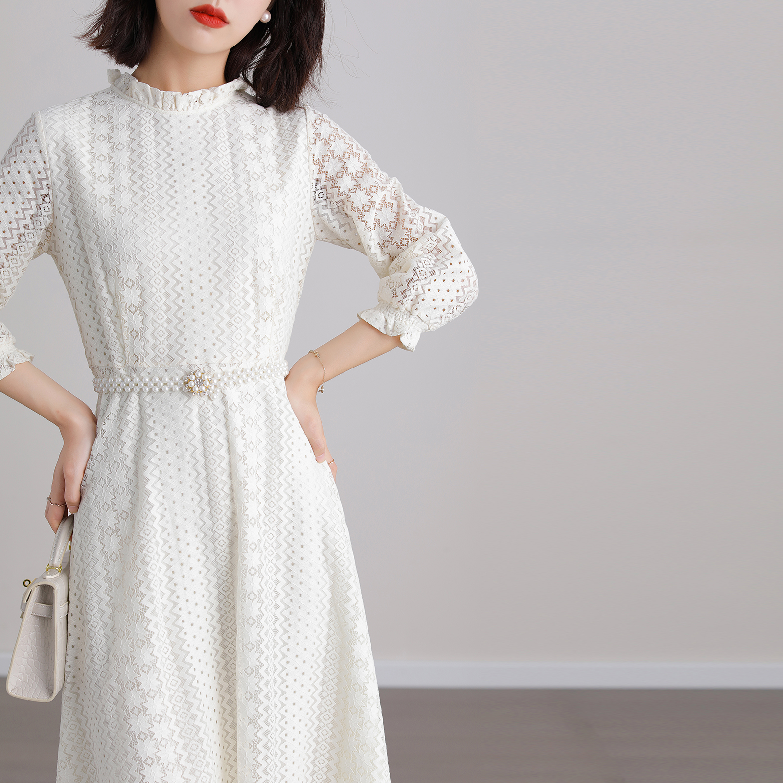 FENPERATE Spring 2022 New White Lace Mid-Length Waist ThinNing Foreign Chiffon