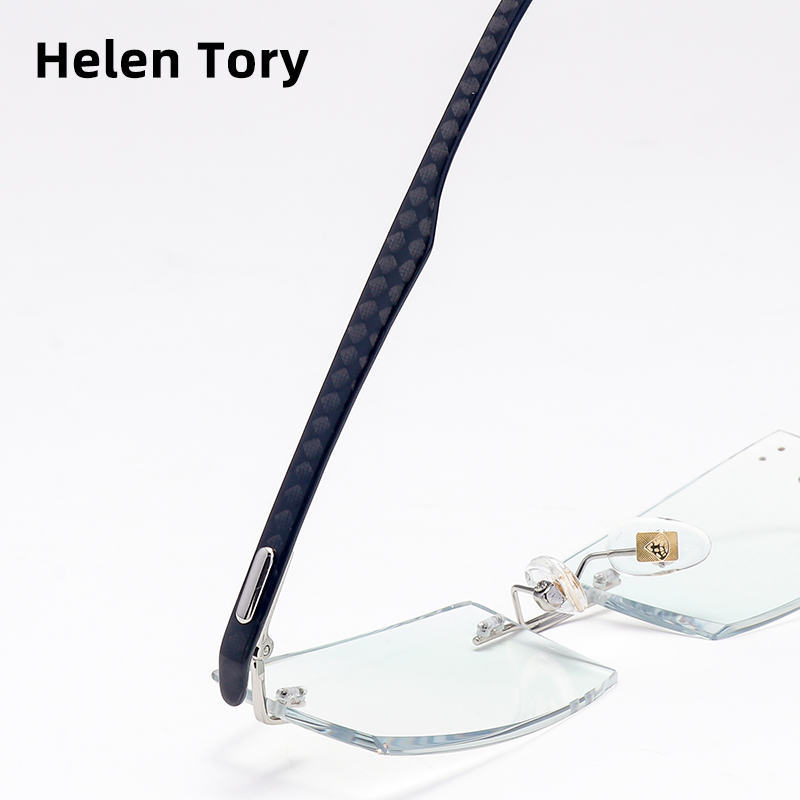 Frameless diamond cut-edge glasses business men's carbon fiber glasses frame light anti-blue myopia glasses matching degree finished