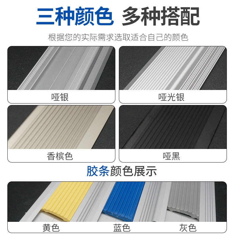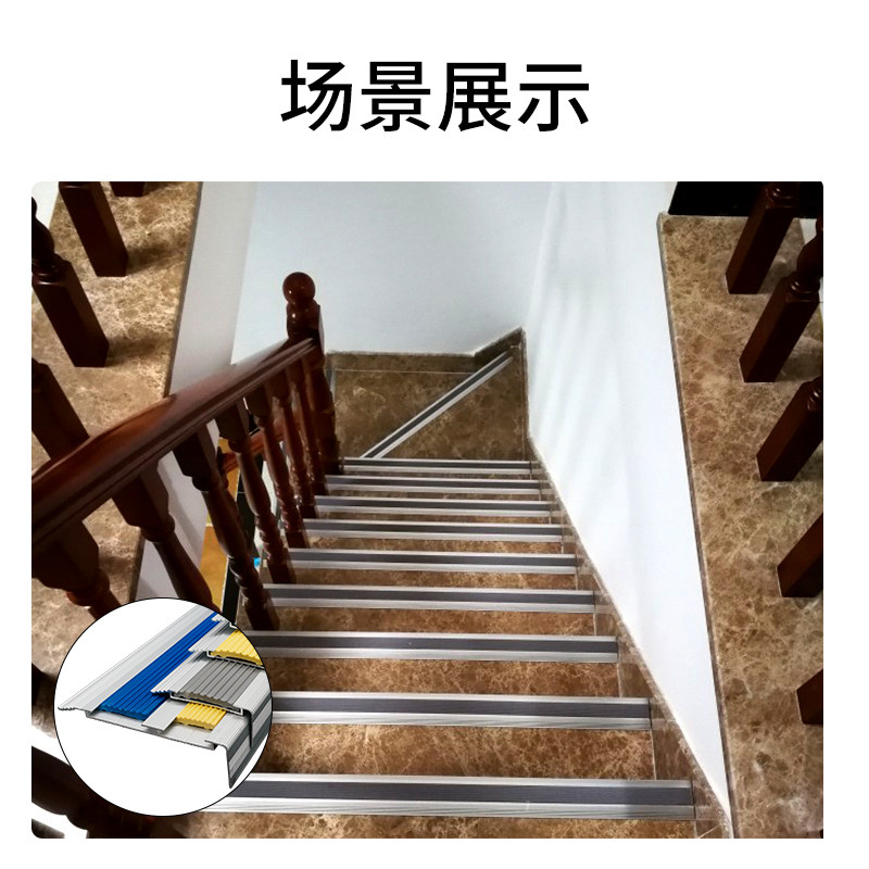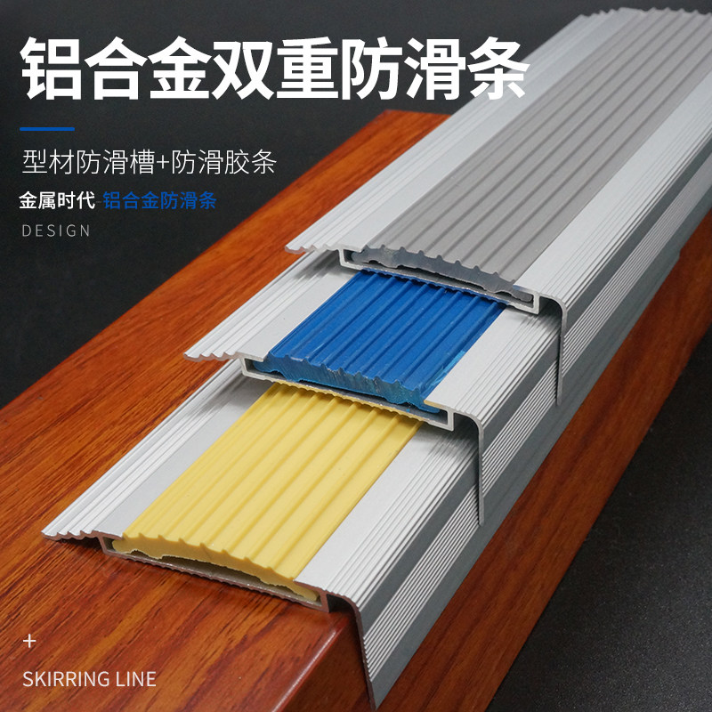 Thickened aluminum alloy self-adhesive stair anti-slip strip Kindergarten school dormitory step l-shaped pressure strip with pvc rubber strip