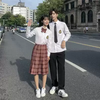 jk uniform long sleeve high school student suit suit summer academic style medium long grid dress amaranth red graduation season School uniform