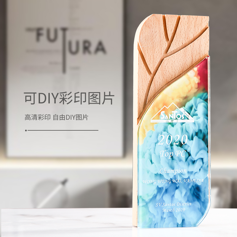 Colorful solid wood trophy medal Customized Crystal Set as Excellent Employee Award Memorial Competition Enterprise Annual Meeting
