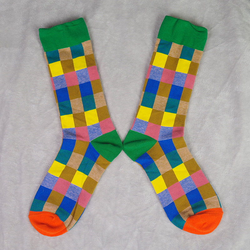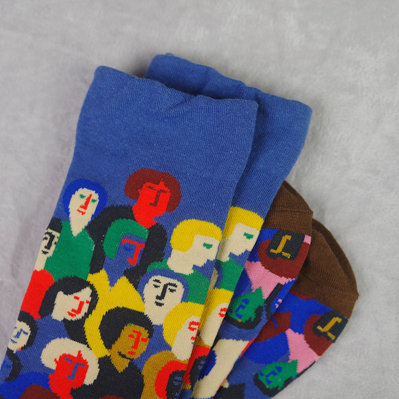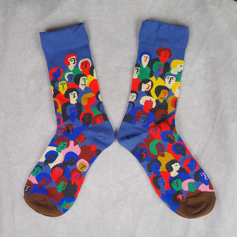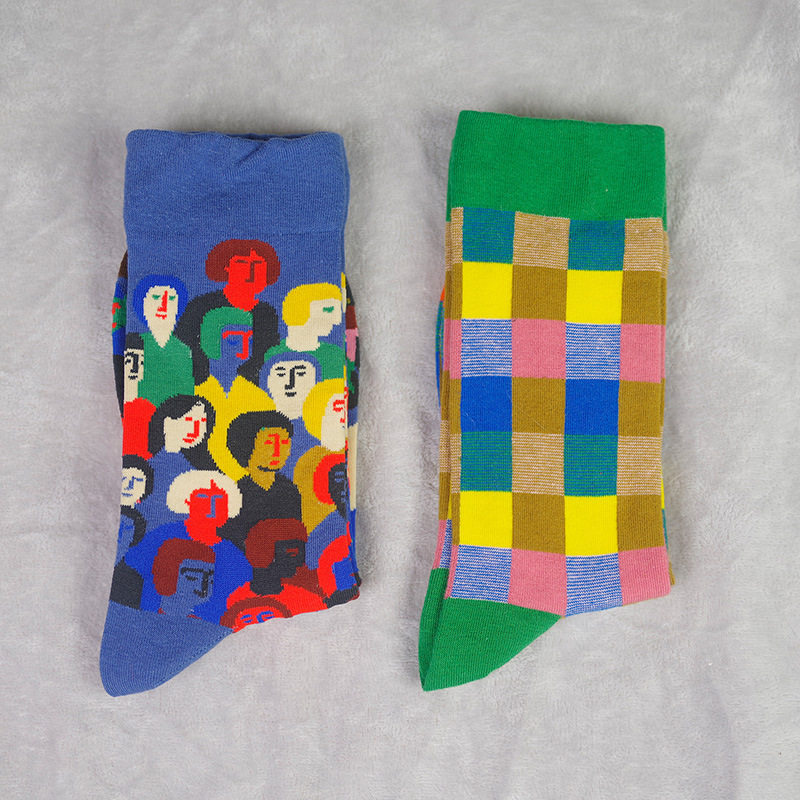 French designer Small Human Head Plaid Personality Fashion Tide Pure Cotton Midbarrel Socks for men and women Spring Summer socks