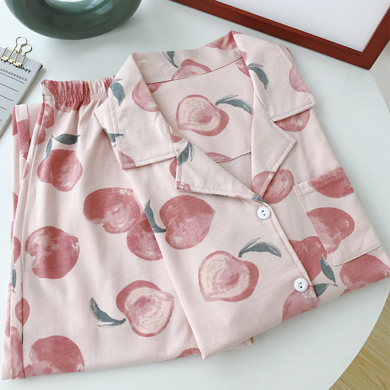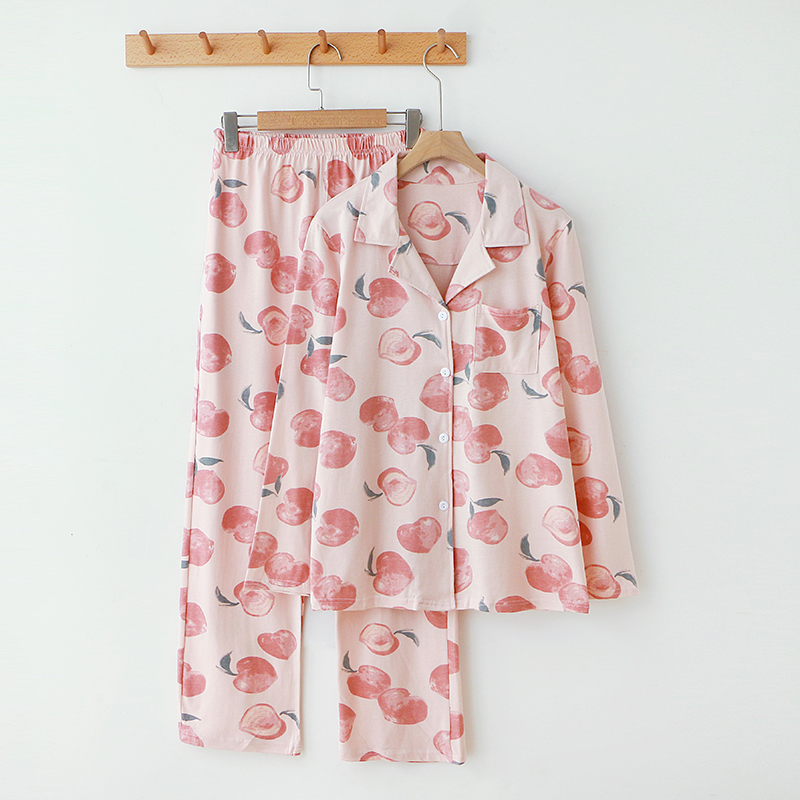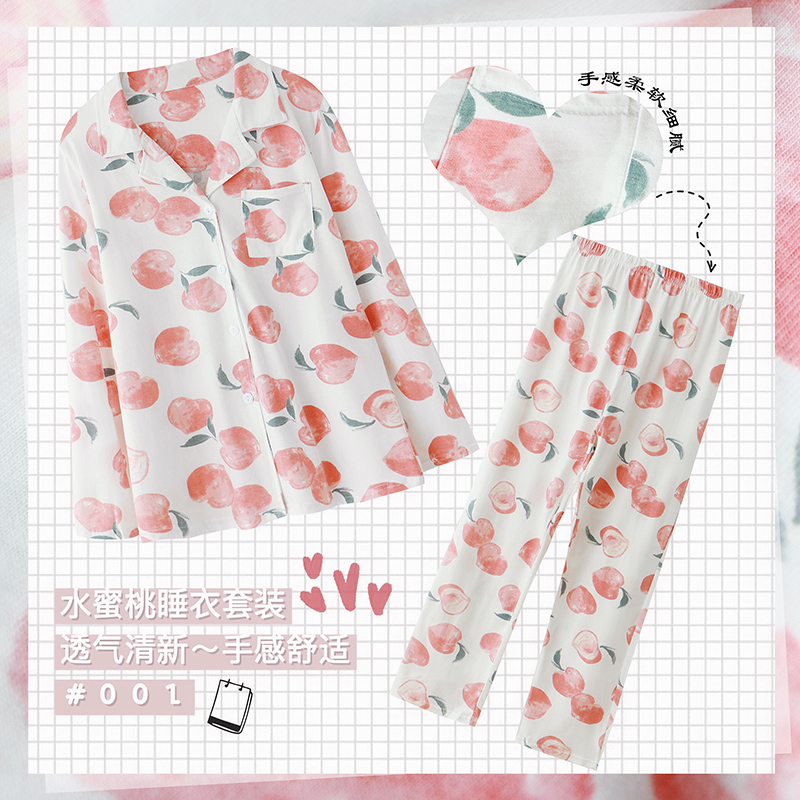 Japanese pajamas ladies spring, autumn and winter cotton long-sleeved girls sweet and cute student peach home service suit
