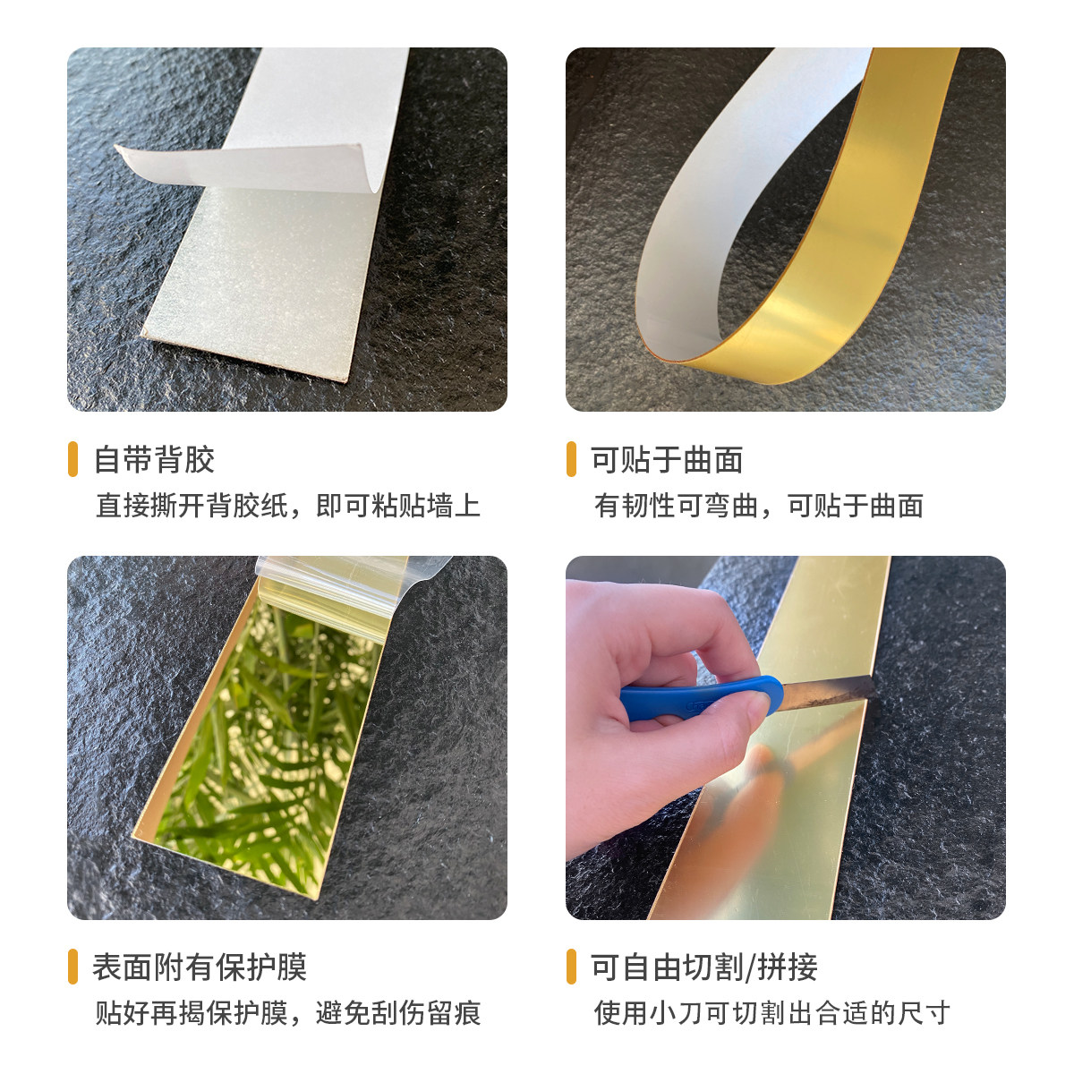 Self-adhesive decorative strip TV background wall acrylic 3d stereo mirror wall sticker waist line sticker ceiling border strip