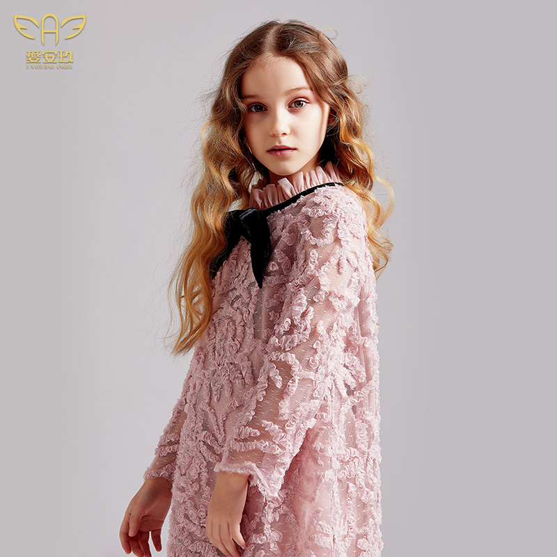 Aianjiu children's dress princess skirt little girl skirt pink spring and autumn dress new net red ocean style bow