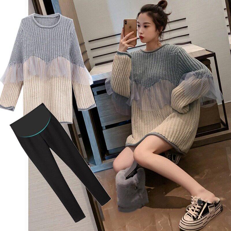 Pregnant women's autumn clothing trend 2020 autumn European and American fashion loose large size sweater dress trendy mother go out long-sleeved suit
