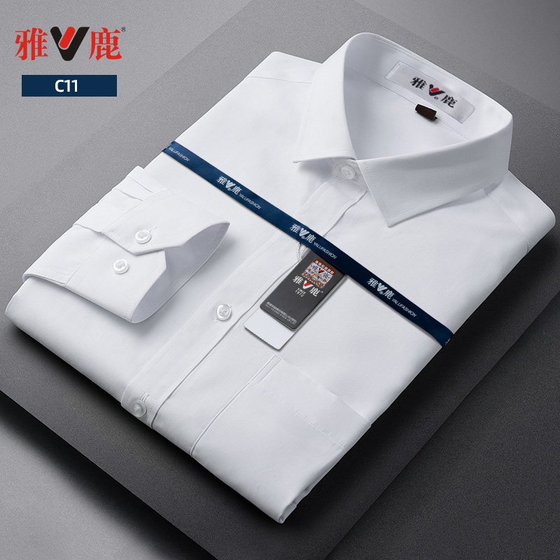 Yose men's long sleeve shirt white to work with business positive dress light lavish, ironing-resistant anti-wrinkle shirt casual workwear inch