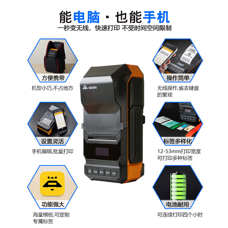wewin Weiwen label printer W210 P51A-3N bluetooth smart portable P knife type mobile telecom communication 2D code barcode pinsheng c20 ribbon PR-5045 TDP-5045