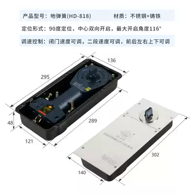 Haida floor spring HD-818 glass door accessories 90 degree positioning 170KG frameless aluminum alloy door shaft floor spring