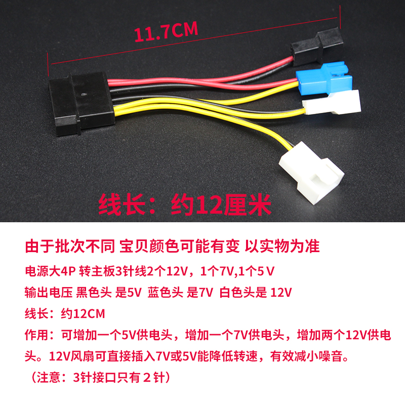D-port to 3-pin fan wire to increase 3Pin interface power supply, 4P to motherboard, 3P 5V 7V 12V