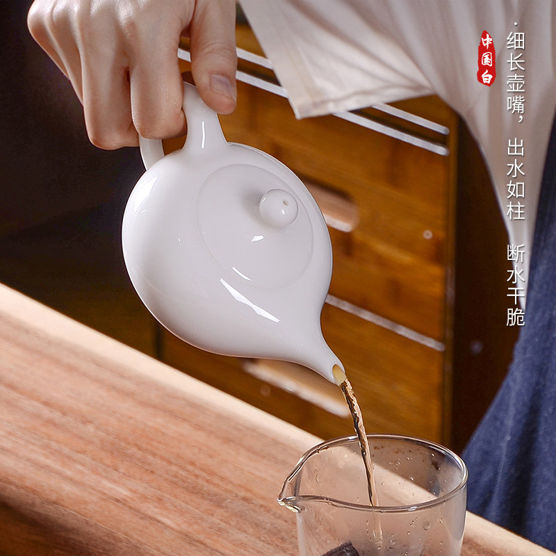 Shea Butter Jade White Porcelain Teapot Defied Handmade White Porcelain Siesch Pot With Filter Kung Fu Bubble Teapot Domestic Ceramic Single Pot