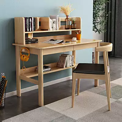 Solid wood desk bookshelf combination simple home students study desk bedroom office desktop computer desk