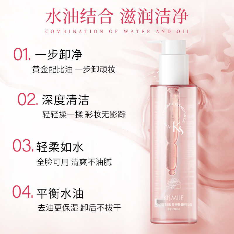 Kismile Flower Cleansing Oil Women's Flagship Store Official Sensitive Muscle Eye, Lip and Face Three-in-One Gentle Cleansing