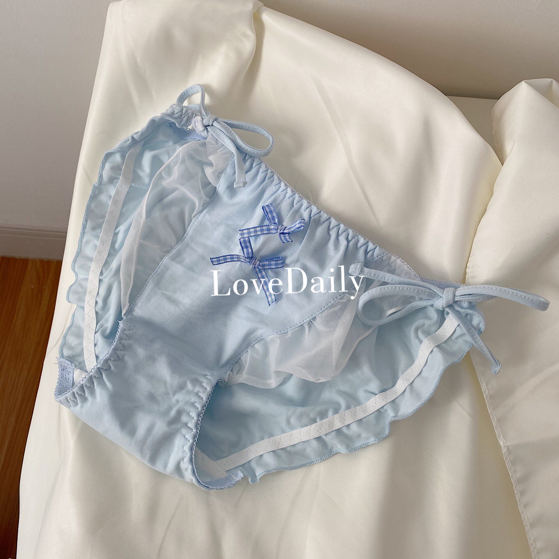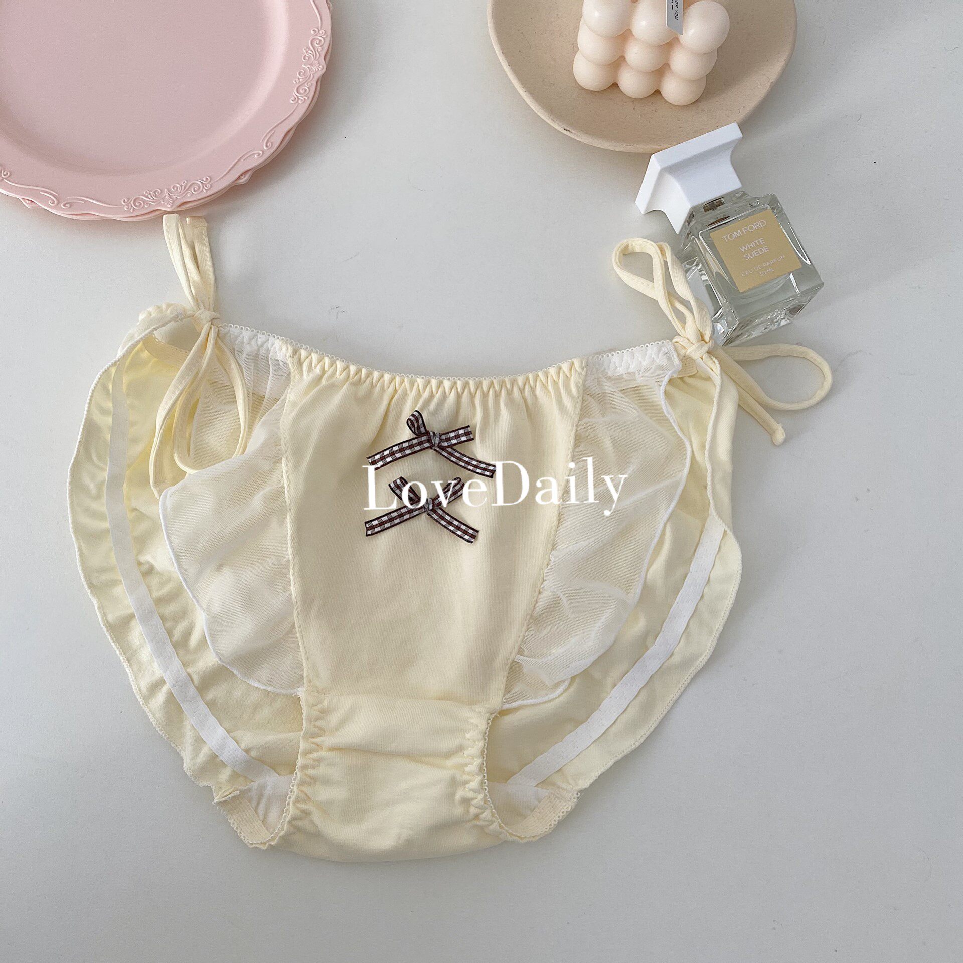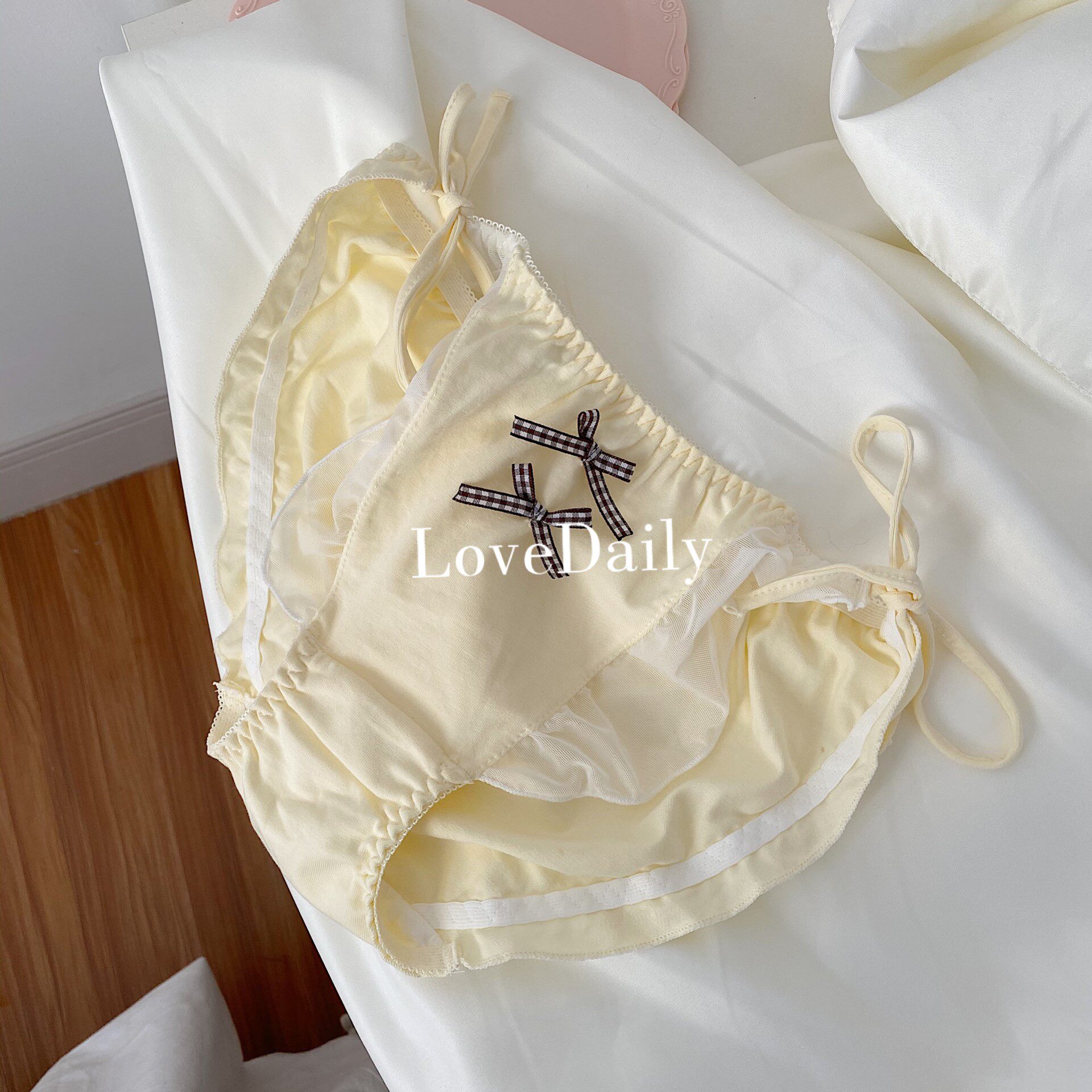 Happy every day, light yellow dress~ Japanese cute and sweet lace up ruffled cotton low-waisted women's panties 088