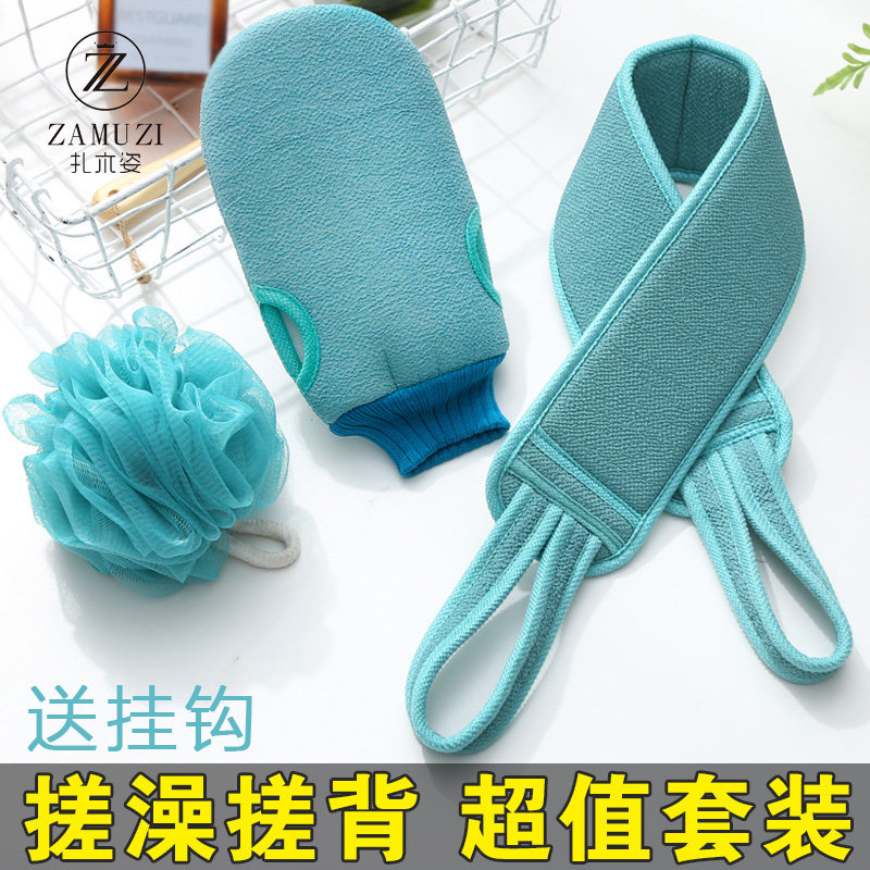 Three-piece set of bath towels, bath gloves, long strips, rubbing back, rubbing gray artifact, strong mud rubbing, home ladies, no pain