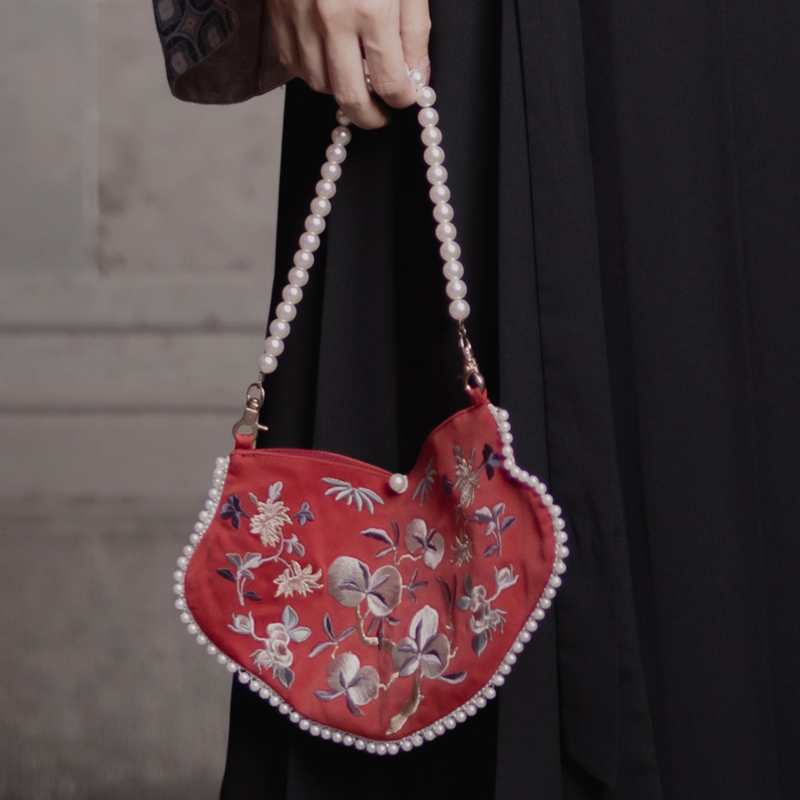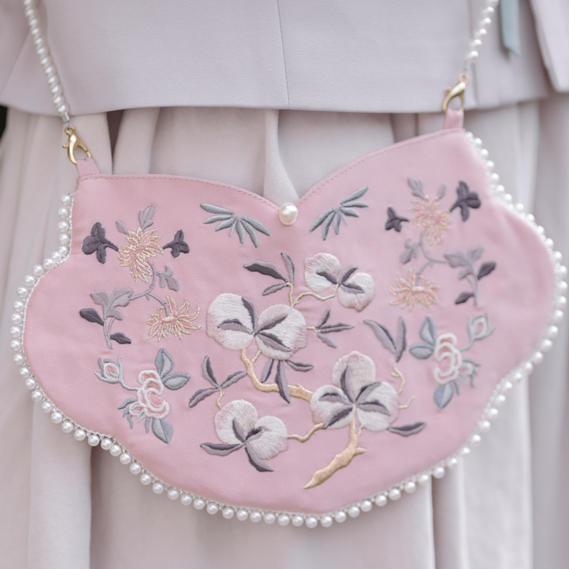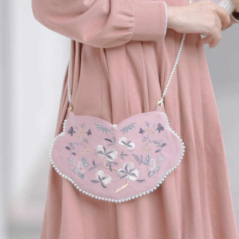 Sichuan Dei Time: Little Peach Full Branches Ancient Wind Hanfu Accessories Embroidered pocketbook Pocketbook Slanted Satchel Bag
