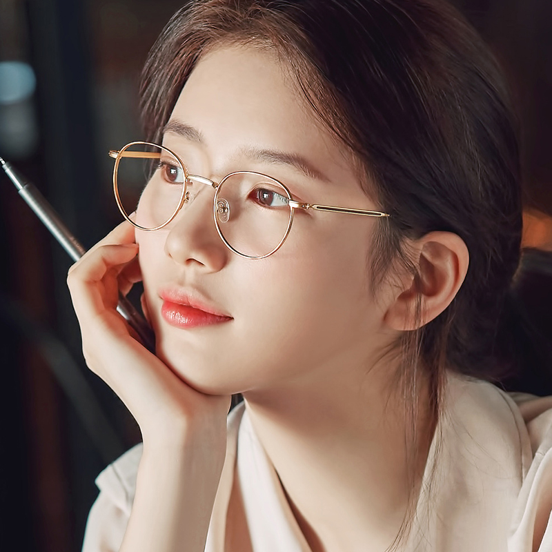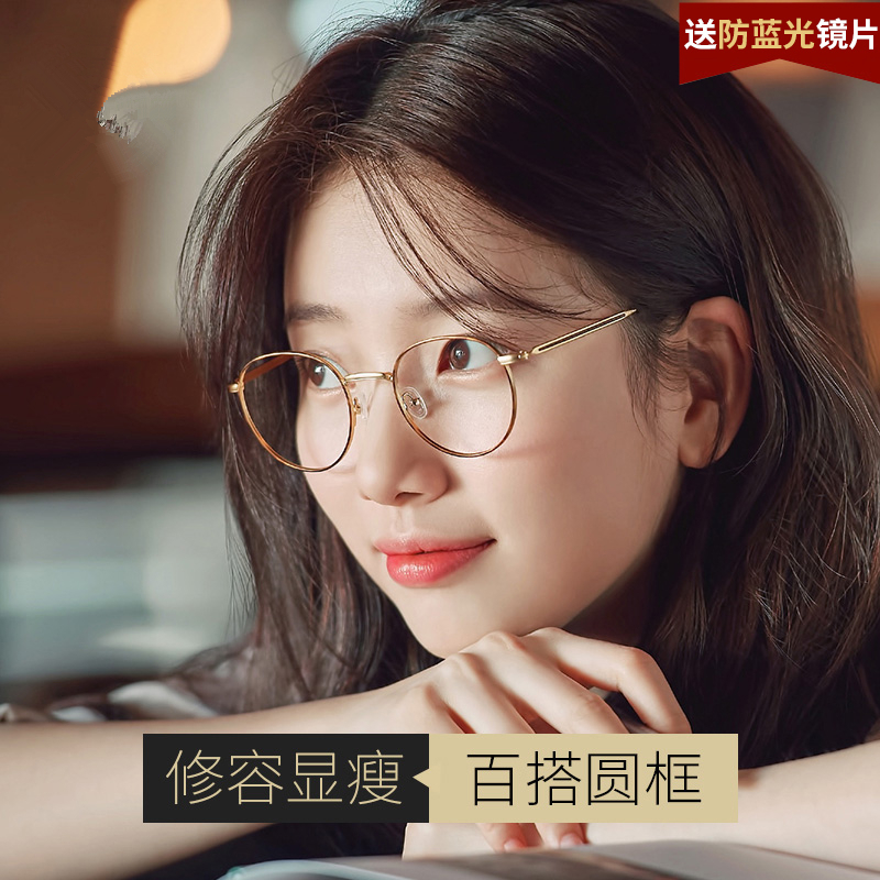 Xiuzhi the same short-sighted glasses female retro small round frame ins net red ultra-light astigmatism gold wire flat glasses frame