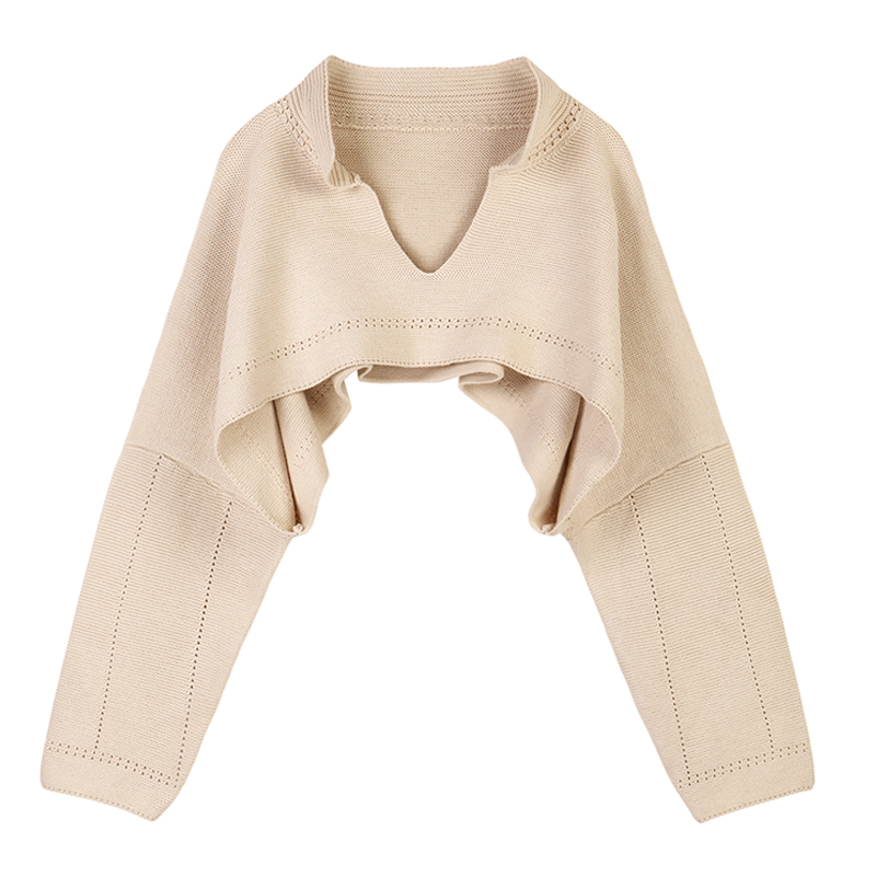 SHIYIYUE November apricot short sweater women's spring and autumn loose belly button V-neck all-match pullover top tide