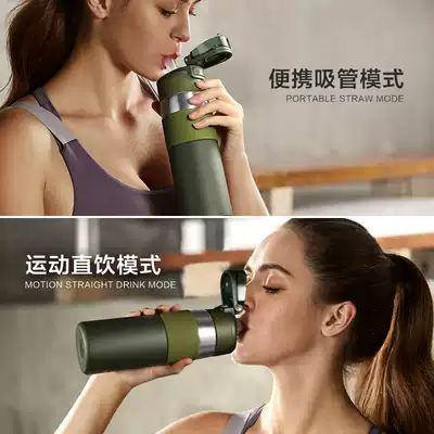 Sports thermos cup large capacity men and women outdoor portable high-end car fitness kettle adult straw water cup for adults