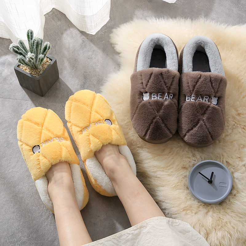 Cotton slippers women's 2019 bag with confinement cotton shoes winter home thick bottom couple indoor home men's autumn and winter