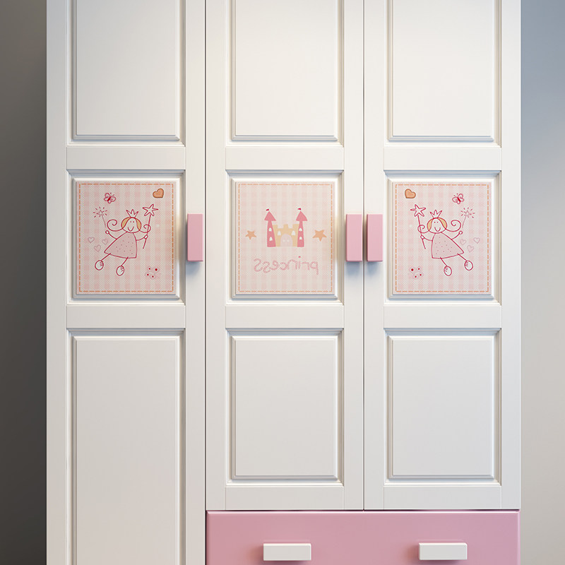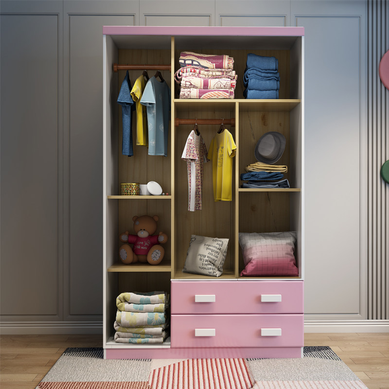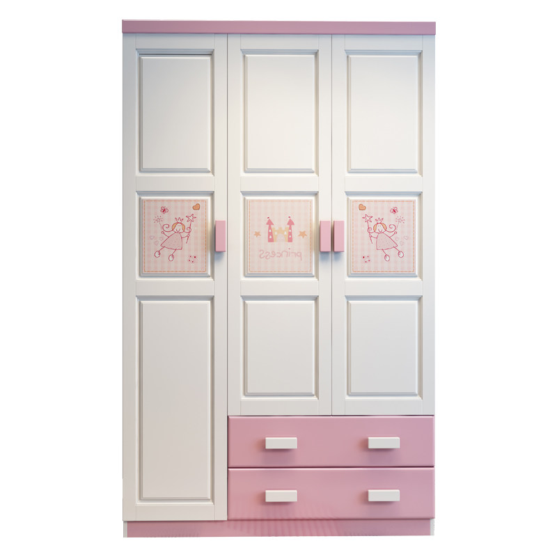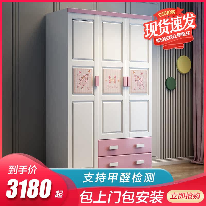 Children's wardrobe Girl storage cabinet Small apartment bedroom household flat door multi-storage pink solid wood three-door wardrobe