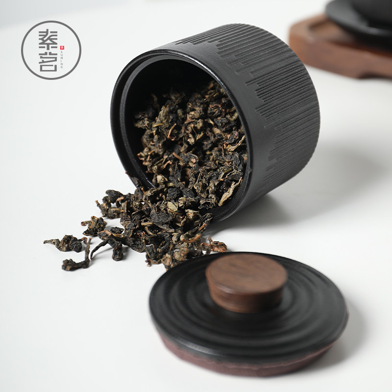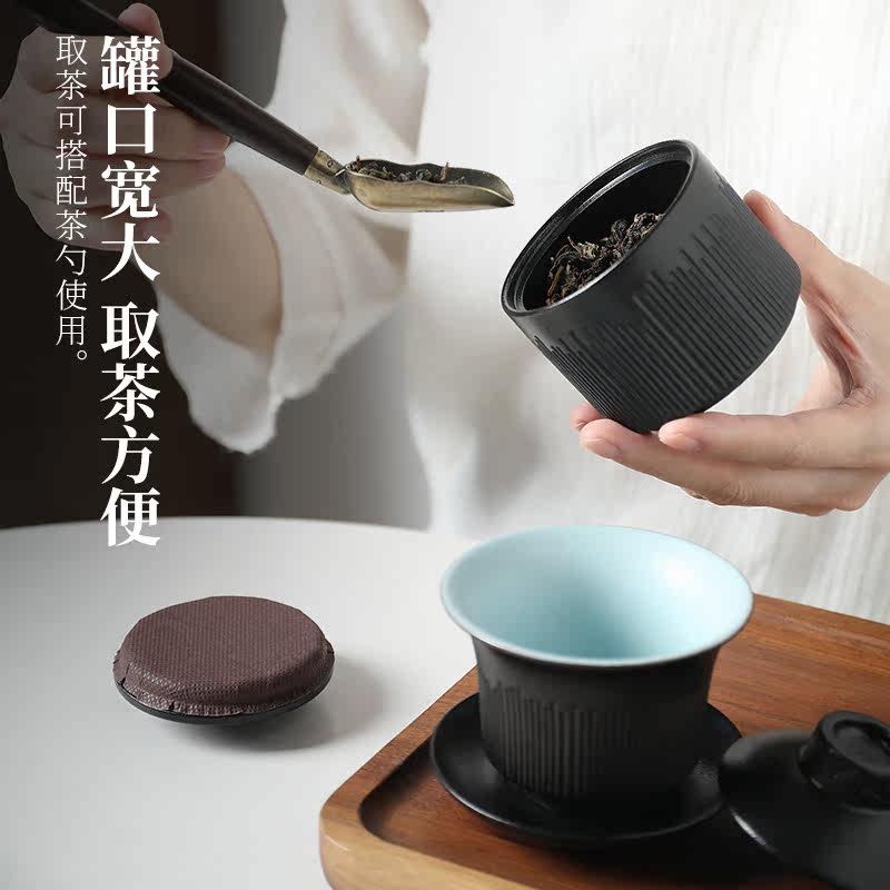Black pottery tea pot ceramic kung fu tea set moisture-proof sealed tank storage tank household tea canned tea set tea ceremony accessories