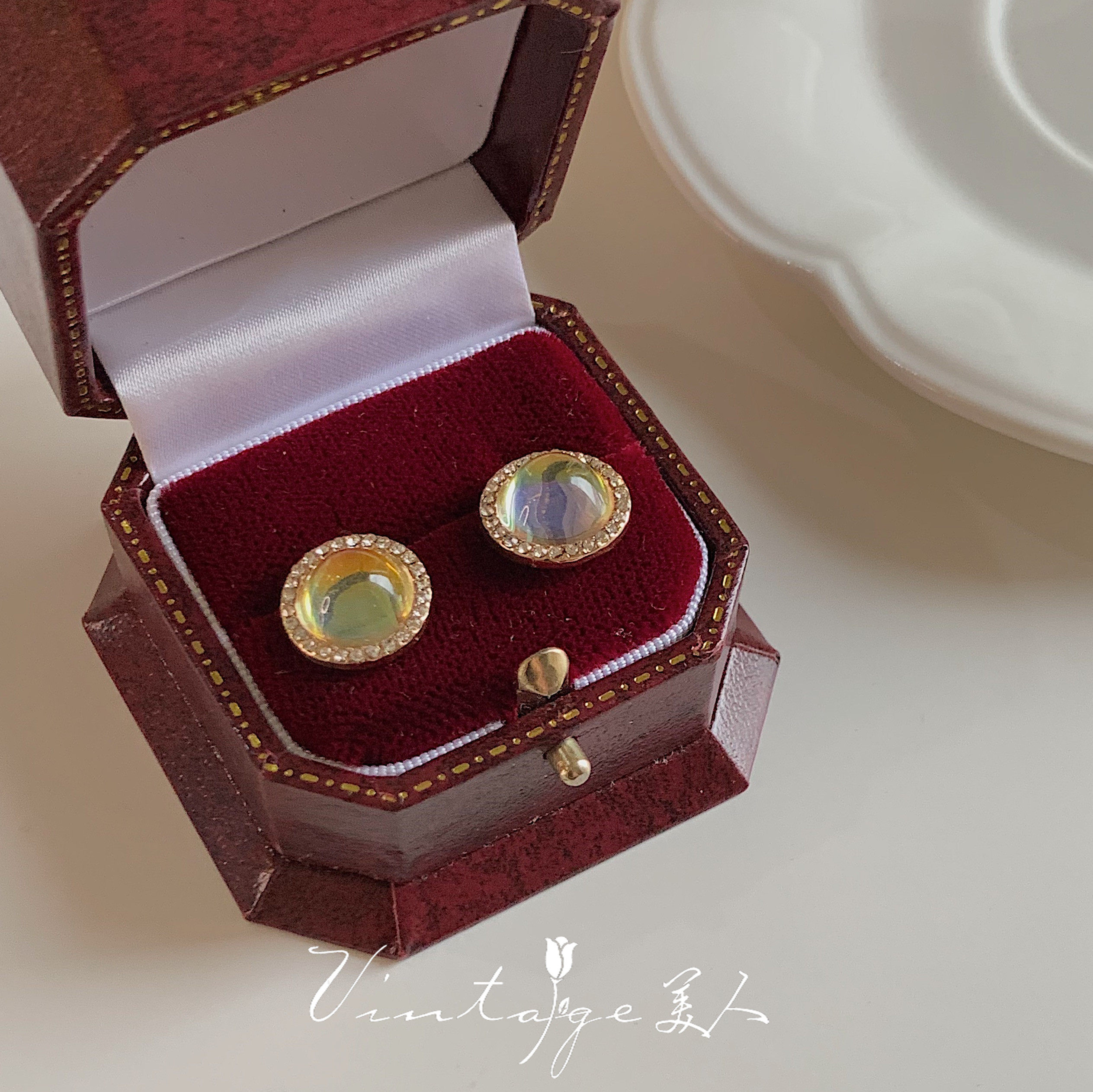 Gold plated inlaid artificial jewel semi-precious stones