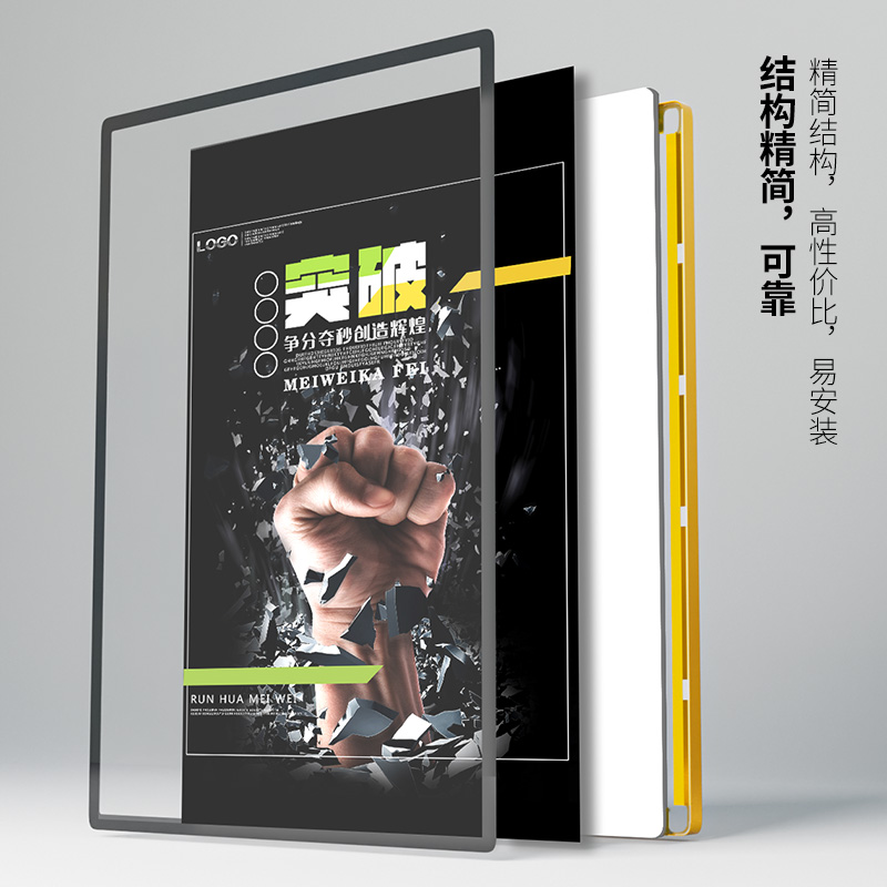 Poster box magnetic drawing frame photo frame fillet hanging wall hanging display board wall sticker aluminum alloy advertising elevator advertising box