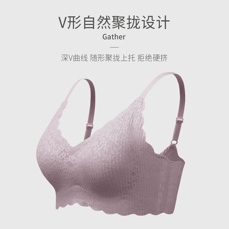 AIMO latex underwear Women's small chest gathered rimless bra beauty vest lace girl thin bra