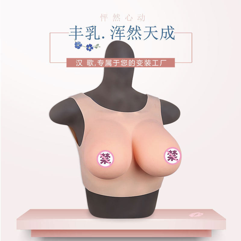 Round neck hollow out breast new silicone fake breast CD cross-dressing pseudo-mother fake chest men's live broadcast chest big vest bust