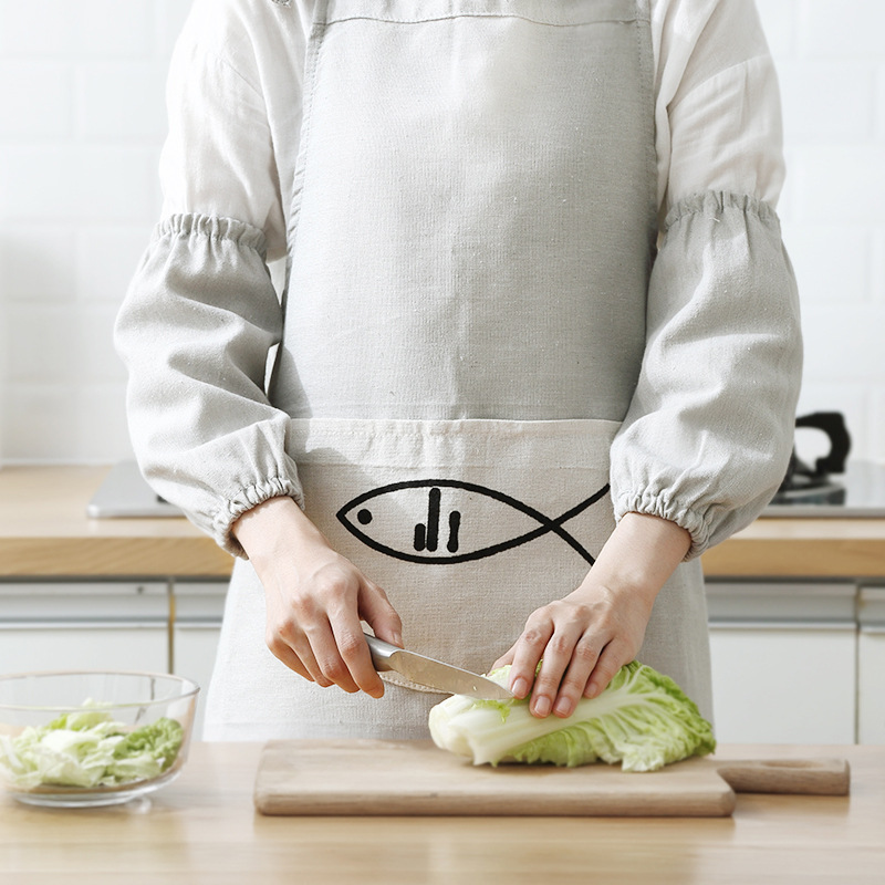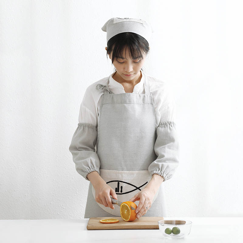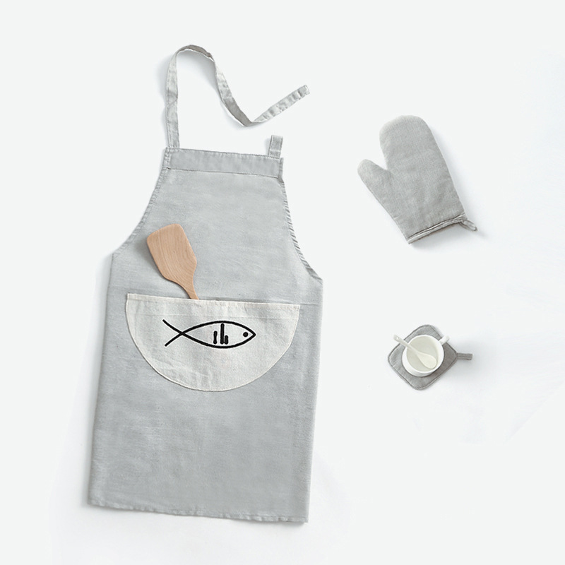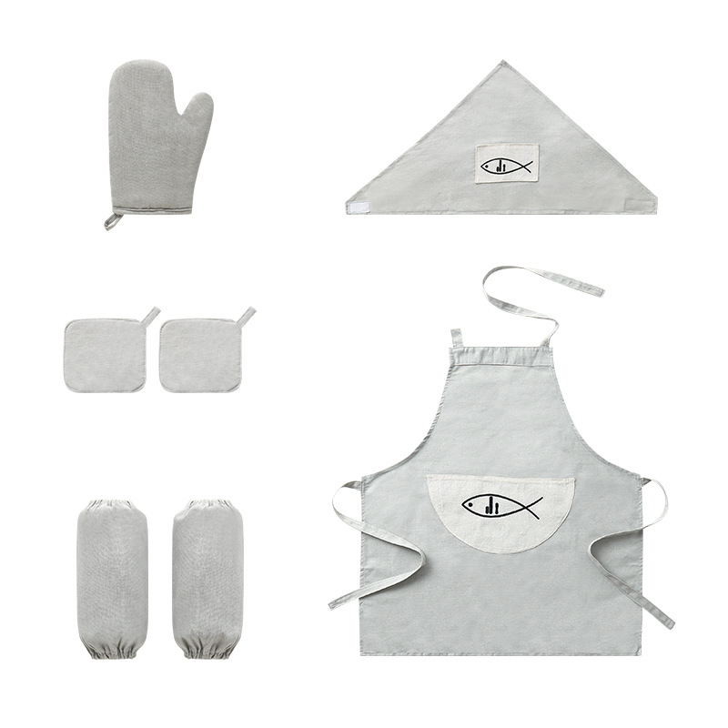 Customizable print LOGO Home Apron Suit Cotton Linen Color Six Pieces Home Kitchen Apron Gloves