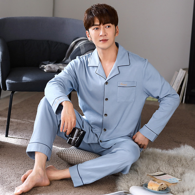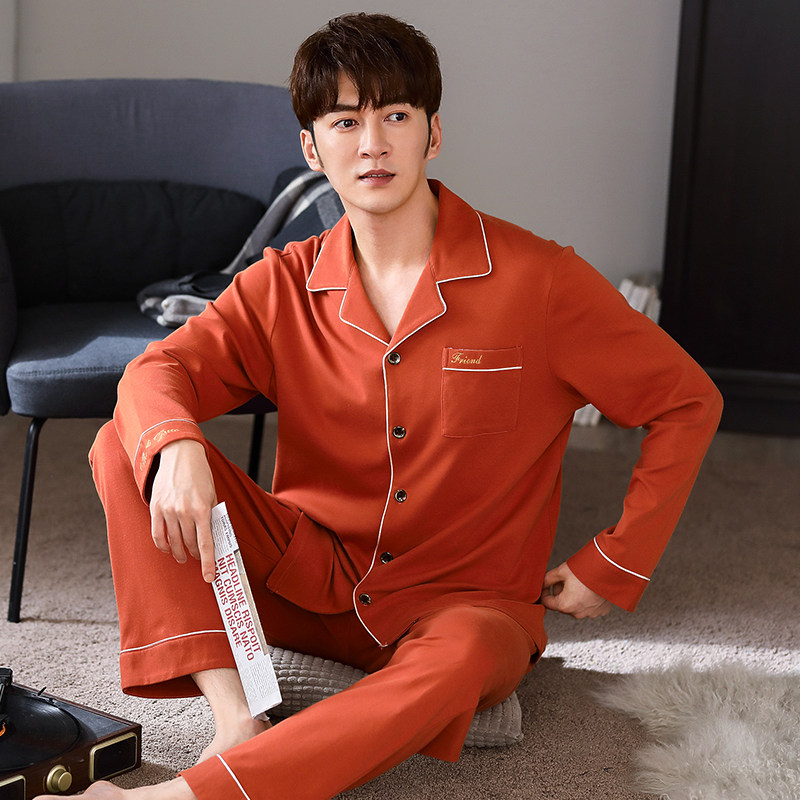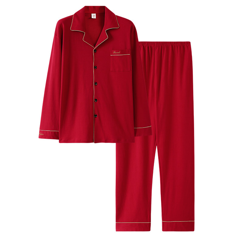 Spring and Autumn Men's Pajamas Benming Year Long Sleeve Cotton Cardigan Jacket Red Loose Tiger Year Plus Size Homewear Set