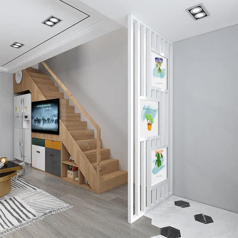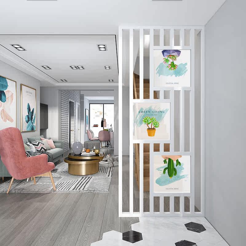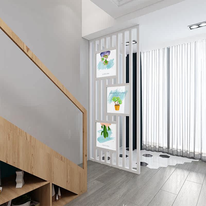 Nordic screen partition Living room light luxury simple entrance Hotel decoration Solid wood hollow vertical stripe seat screen
