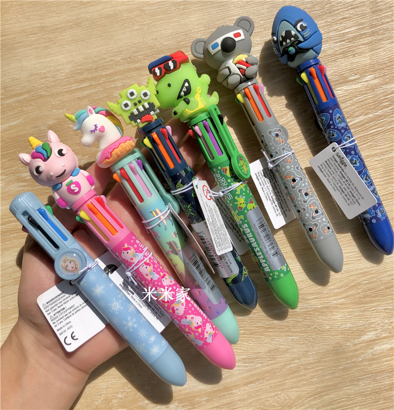 Green dinosaurs 8 color ball pen pink unicorn 8 color ball pen blue shark 8 color ball pen gray koala 8 color ball pen mint green unicorn 8 color ball pen monster