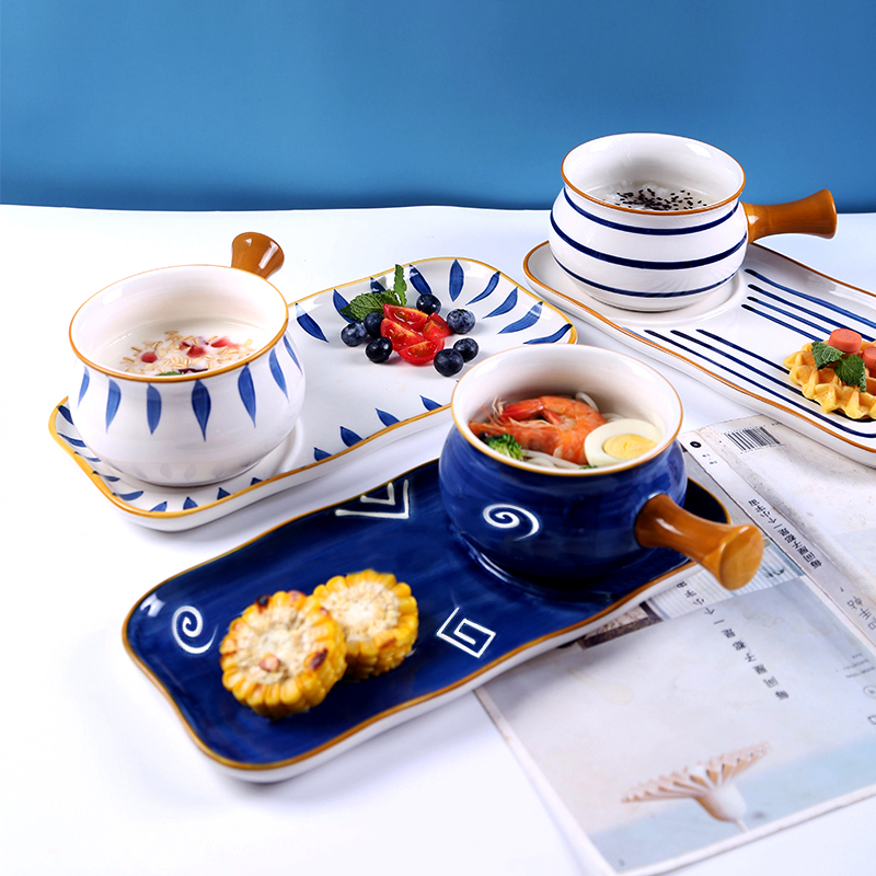 Moonnight long plate blue grass handle bowl stripe long plate fire shadow handle bowl stripe handle bowl moon night breakfast set Blue Grass long plate fire shadow long plate fire long plate stripe breakfast set Moon Night handle Bowl Blue Grass
