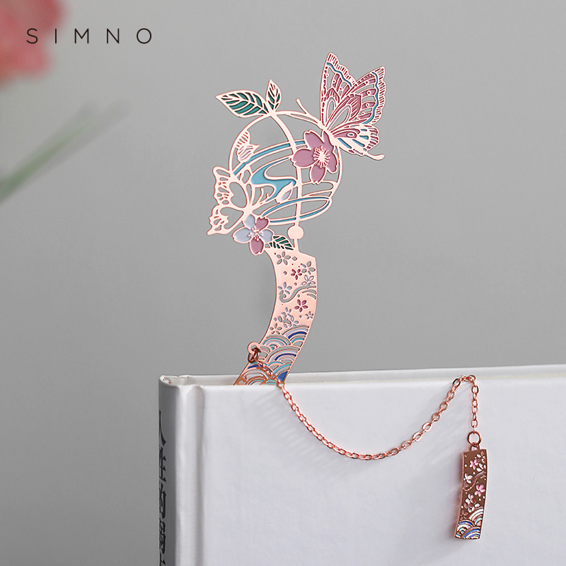 Xinmo classical Chinese style creative exquisite brass metal personality hollow bookmark gift box girl heart cute pendant net red small gift student with leaf vein cherry blossom cultural and creative graduation gift retro