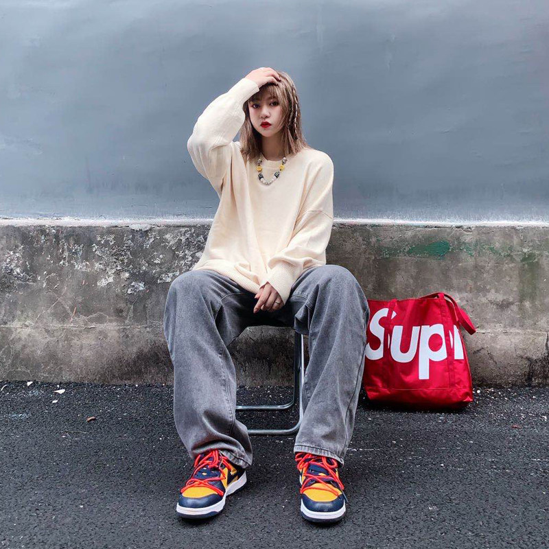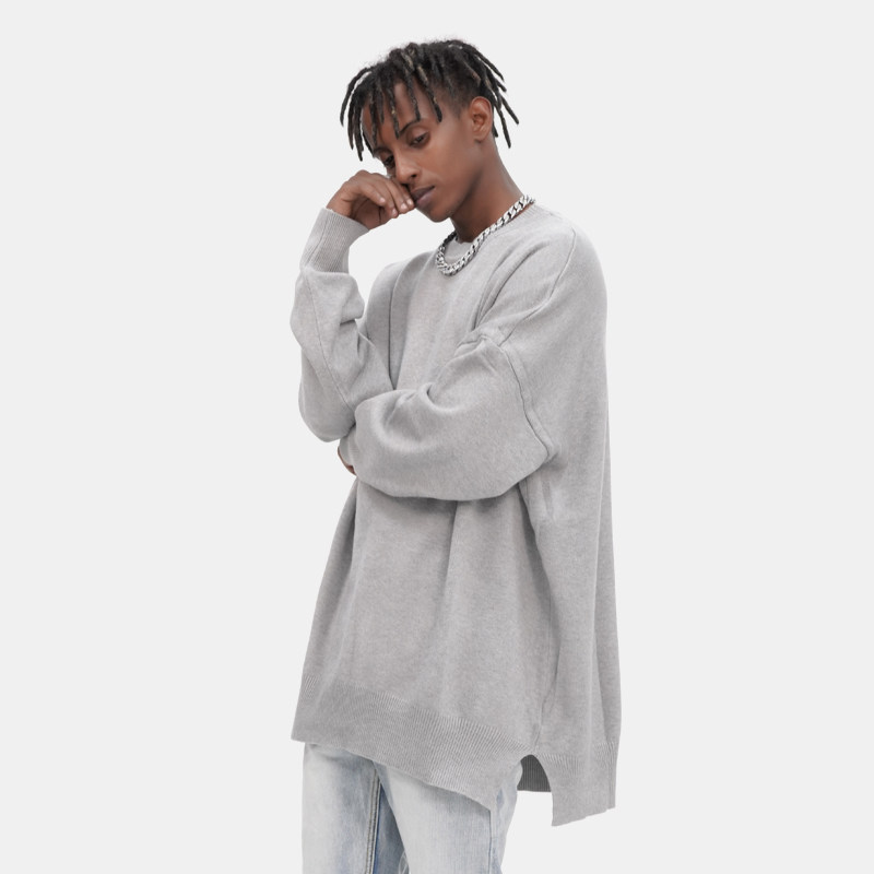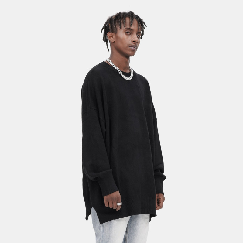 BTW spring multi-color basic thin base sweater trendy men and women lovers long-sleeved side split high street loose sweater