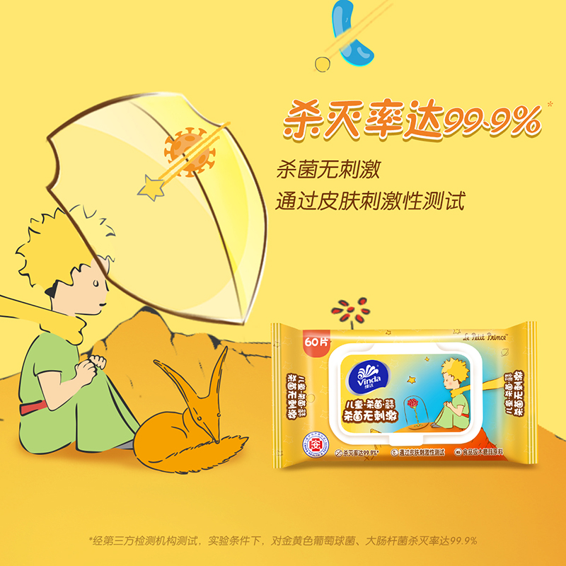 Vader Children's Wet Wipes Hand Mouth Available 60 Pieces 4 Pack Little Prince Joint with Cover Non-Fragrant Cleansing Wet Wipes gm