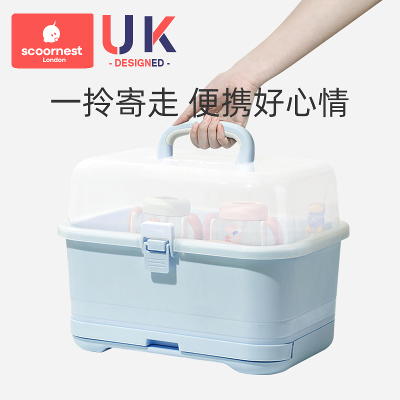 Kechao baby bottle storage box drain rack Baby tableware storage box with lid Dust-proof drain rack