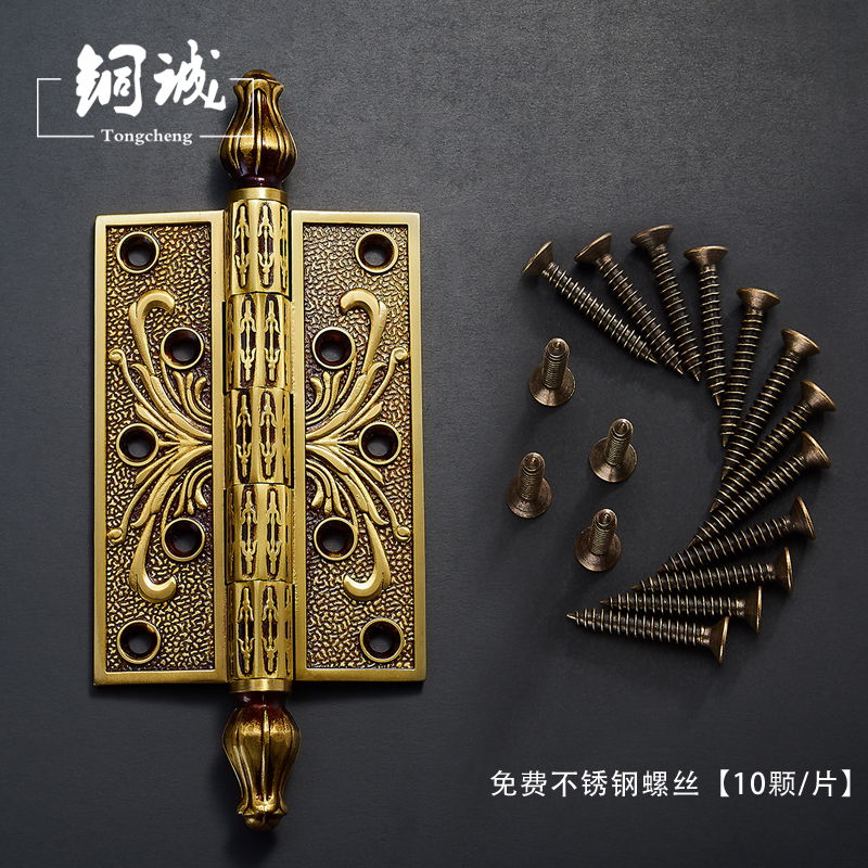 Copper Honest Eurostyle Carved Flowers Mute Flat Open Pure Bronze Room Door Hinge 8 Inch Thickened Villa Gate Hinge 4 Inch Live Folding Page