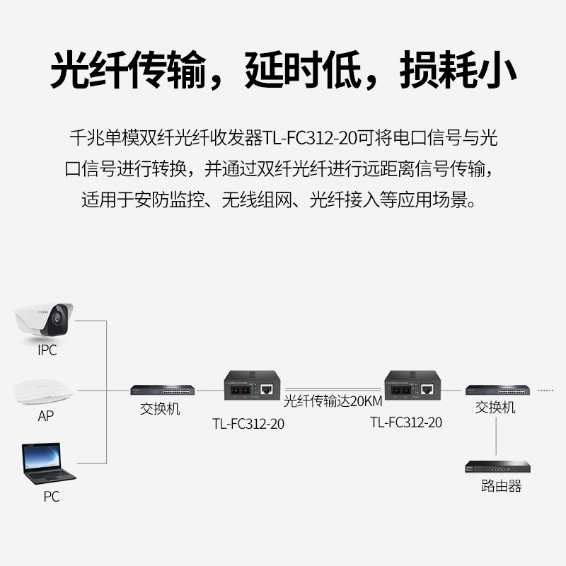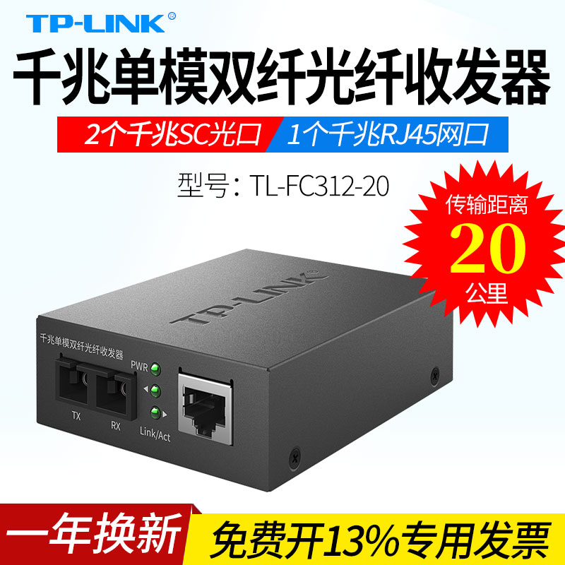 TP-LINK Pulian TL-FC312-20 one thousand trillion single-mode double slim fiber transceiver electrostomy transfer SC photoelectric converter 1310nm security monitoring 20km optical drill TL -