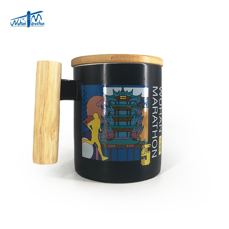 URG Hanma Fifth Anniversary Limited Edition Mark Cup With Lid Spoon Running Marathon Memorial Creative Ceramic Mug Black