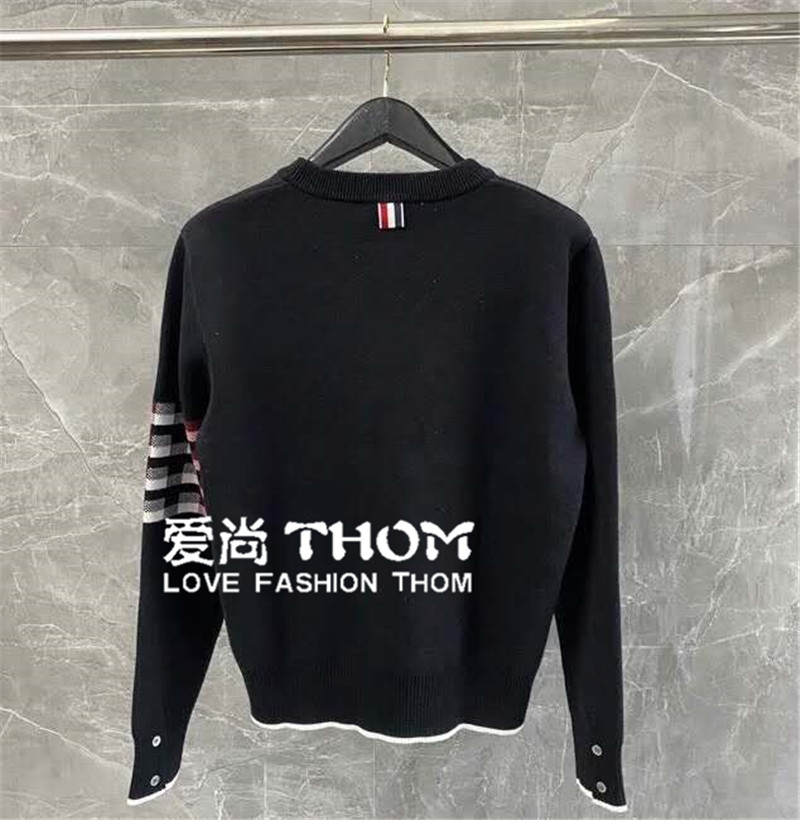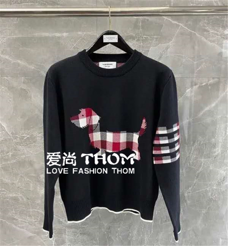 Thom bins Sweater TB New Crewneck Turtleneck Plaid Jacquard Puppy Sweater for Men and Women