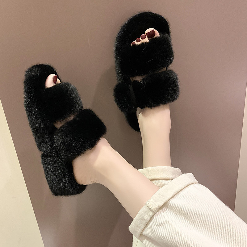 Hairy slippers women 2021 autumn winter new Korean version of the thick bottom net red outside wearing fashion versatile one-word summer cotton slippers